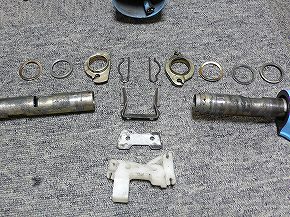 そもそもアウターパイプとインナーパイプが必要な理由は、ウインカーの共回りを防ぐため。それだけの為に、この止め具やアウター・インナーパイプのワイヤーの穴合わせが必要になる。